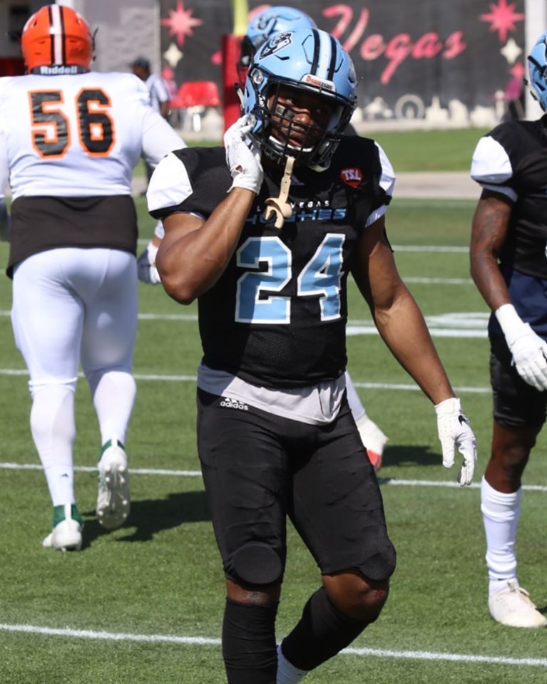 The Spring League concluded its’ fourth showcase season in 2020, with a three-team two-match season in Las Vegas. Las Vegas Hughes finished Champions with a 14-7 victory over TSL North in game 1, and a 17-6 defeat of TSL East in game 3, with Defensive Back Brandon Brice sealing the game, and Championship with an interception on the final play. [Ref: 2-4]